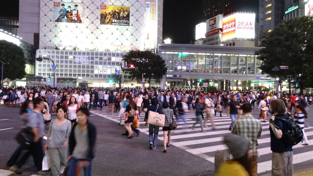 Walking around the central parts of the city at night, including the popular Roppongi sqaure and Shibuya crossing